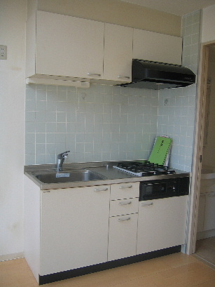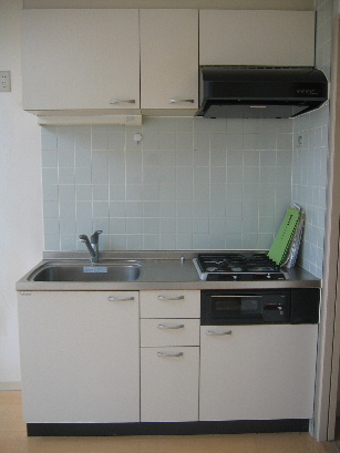 キッチンは2口のシステムキッチン、グリル付きです