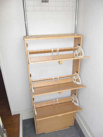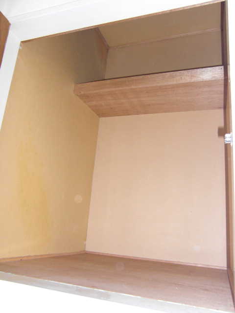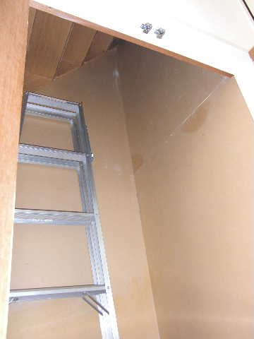 向かって左の物入の収納スペースは、入り口からは想像できない高さがあります
