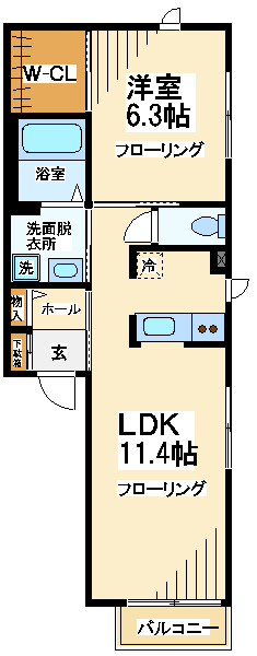 【間取り】 1LDK 44.10㎡