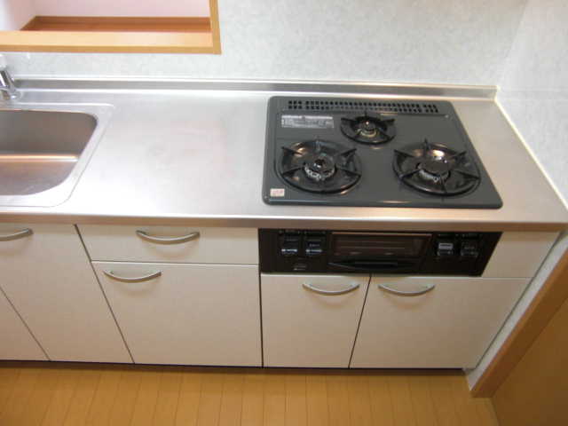 お料理好きにはたまらない、システムキッチン(ガス3口+グリル)です☆スーパーも目の前にございますので、自炊がより楽しくなりますね!
