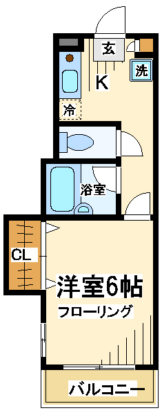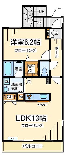エアコン(1機)、フローリング、2口ガスコンロ設置可、給湯