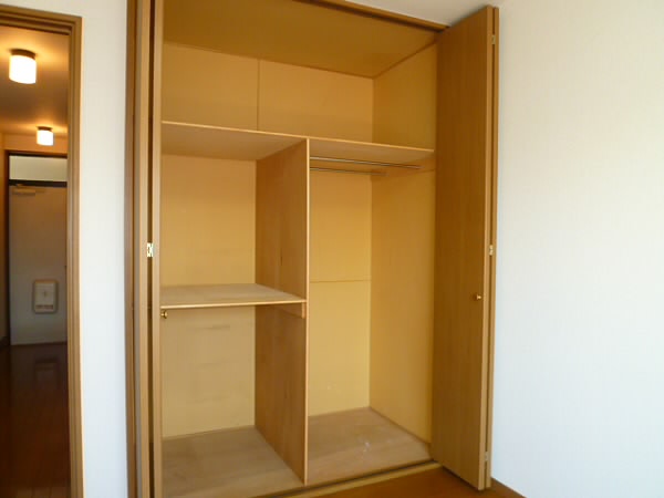 収納は3段に分かれたクローゼットがあります。横幅もしっかり取られており、お洋服をたくさんお持ちの方でも心配いりません