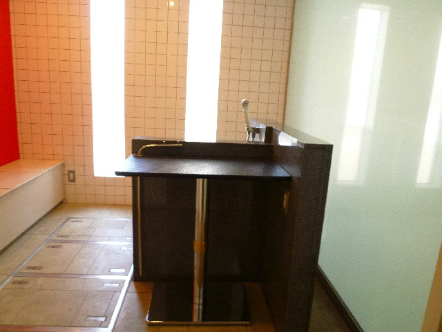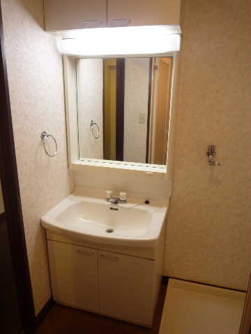 鏡が広いタイプの独立洗面台です