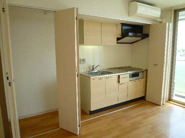 キッチンもしっかりと目隠し出来る扉も付いています