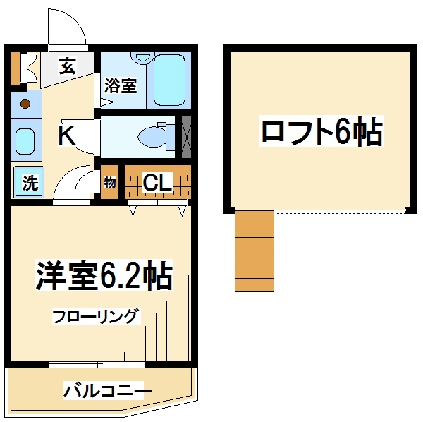 こちらにお布団を置いて頂ければ、下の洋室は6.2帖を使い放題