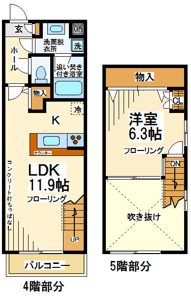 天井が吹き抜けになっていますので、ゆったりとした空間を感じてください