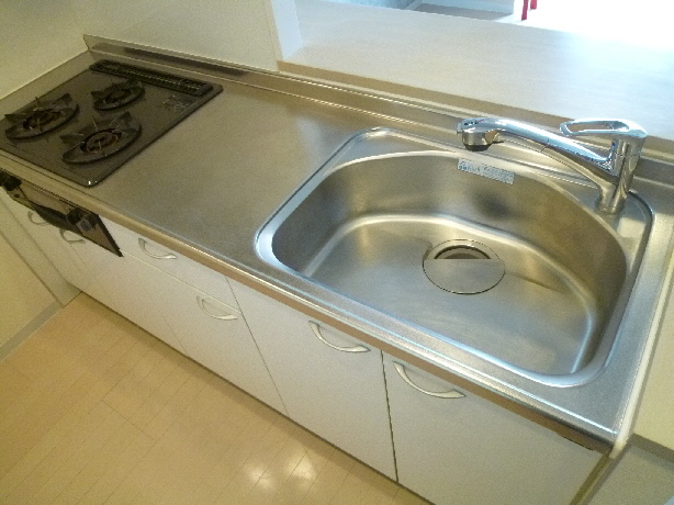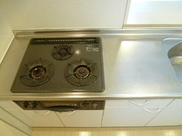 広々とした三口のシステムキッチンで、お料理がうまくできること間違いなしです
