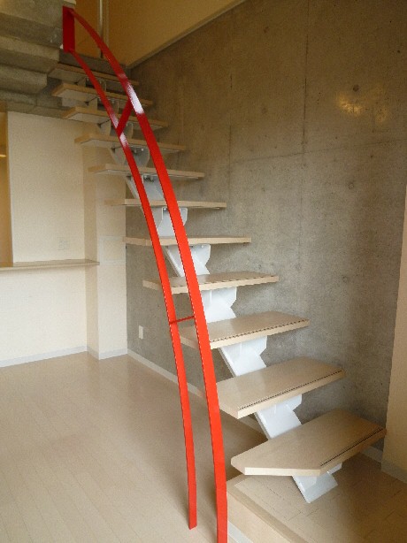 おしゃれな階段を上った先には、窓がたっぷり取られた開放感のあるお部屋がお出迎え