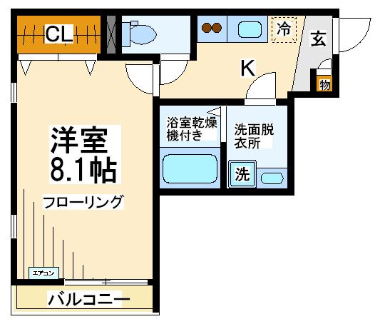 エアコン、独立洗面台、浴室乾燥機、オールフローリング