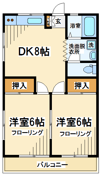 【間取り】 2DK 41.55㎡