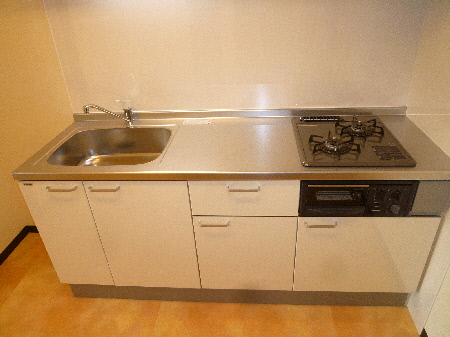 キッチンは、新規交換済みのシステムキッチン(ガス2口)です☆