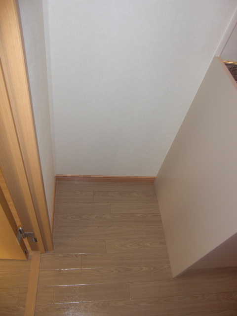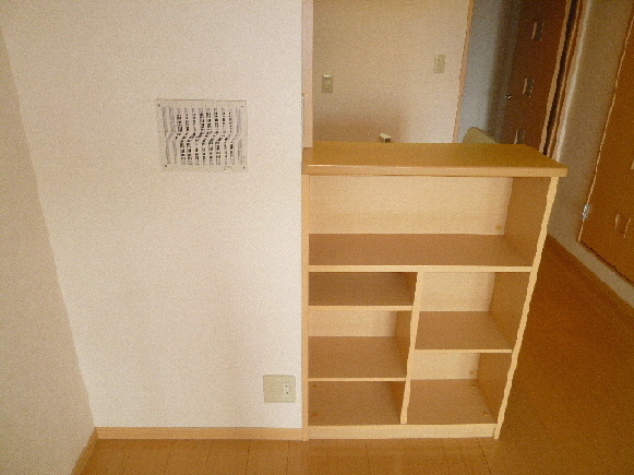 キッチ脇にもちょっとした収納、向かいの壁にもちょっとしたスペースがあります