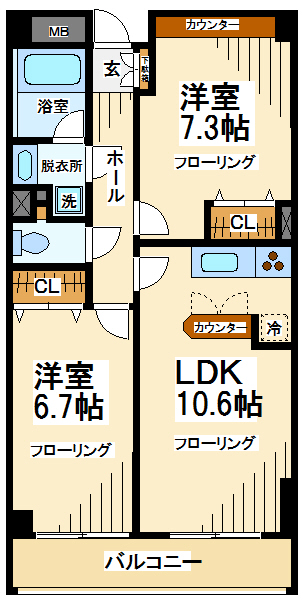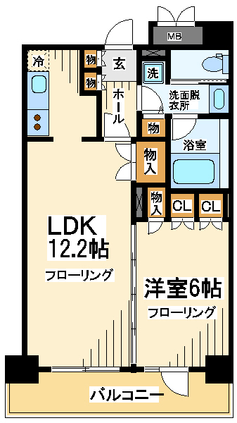 7帖のフローリングです。階数によってホワイト基調のお部屋とブラウン基調のお部屋に