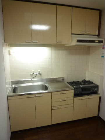 2口ガスコンログリル付きシステムキッチン、上下の収納スペース、