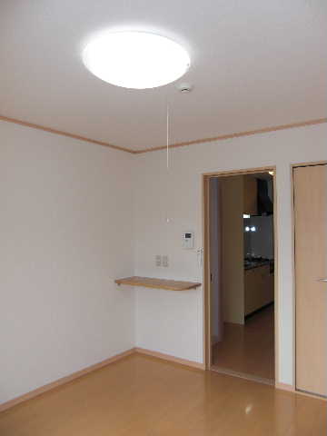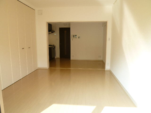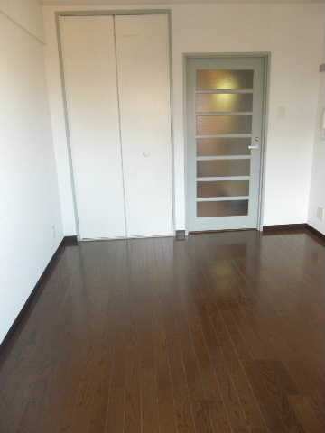 お部屋は白い壁紙にダークな色合いのフローリング、高級感あります。天井の高さがありますので、広さを感じるお部屋です。