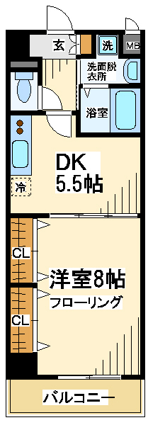 【設 備】 1口ガスコンロ、エアコン、オートロック、バス・トイレ別、