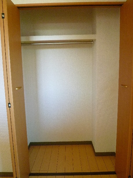 収納は3段に分かれたクローゼットがあります。横幅もしっかり取られており、お洋服をたくさんお持ちの方でも心配いりません