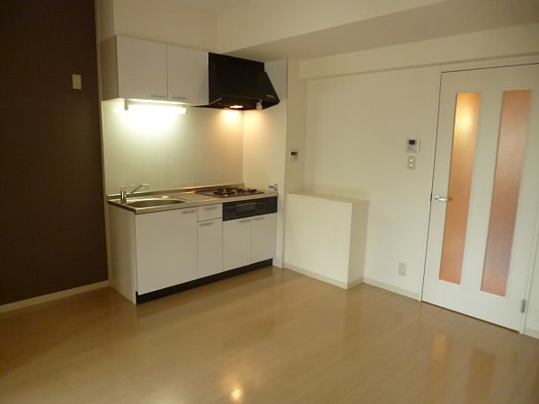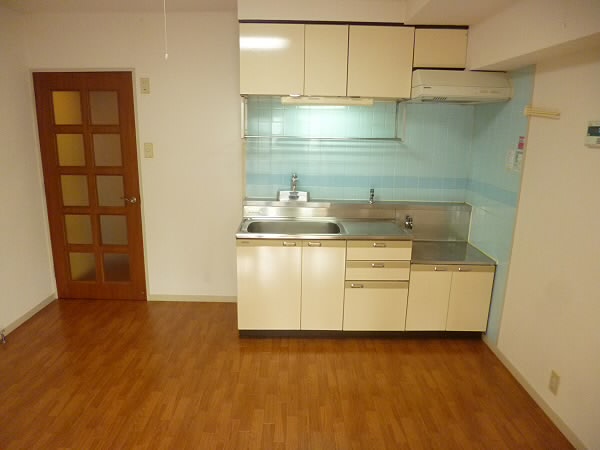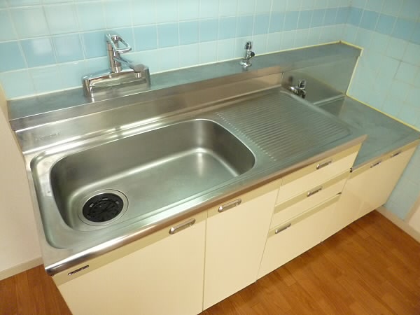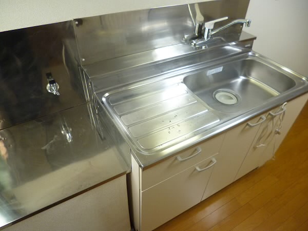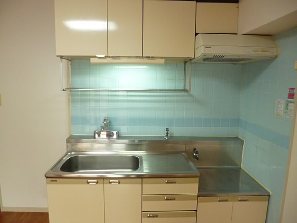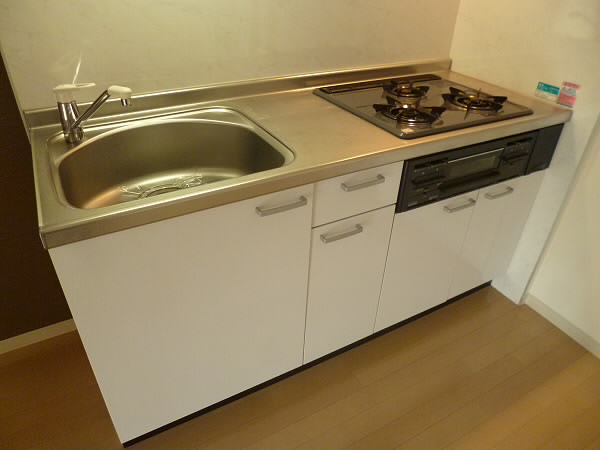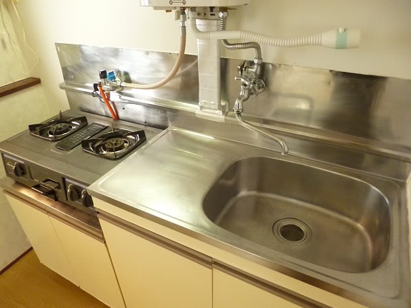 キッチンはガスコンロで、2口コンロを付けて頂ける大きさです。