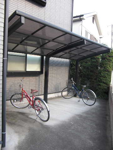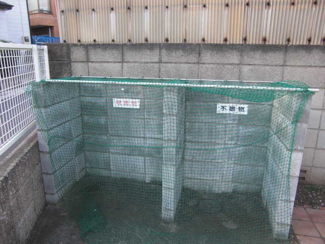 屋根付き駐輪場です。 ゴミ捨て場です。鍵がかかるので入居者しか開けられません。