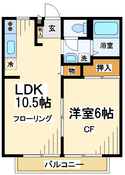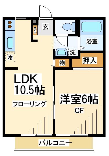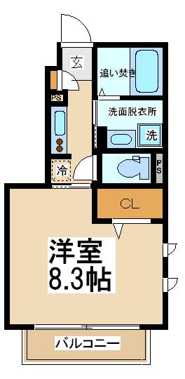 【間取り】 1K 1階 26.49㎡