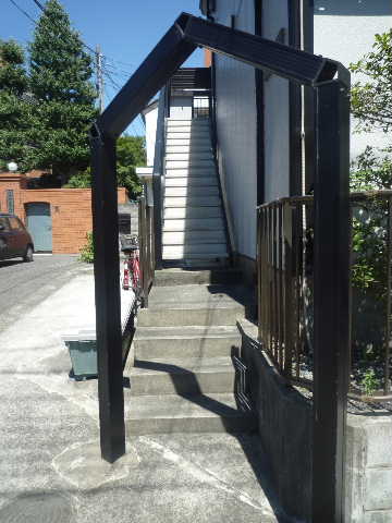 到着です。ありがとうございます。 こちらの階段を上がった2階です
