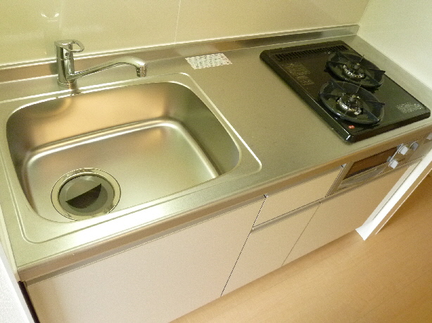 2口のガスコンロが設置可能、上下の収納スペースが充実、
