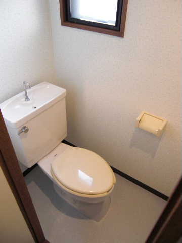 トイレは、便座が温かくなるウォームレットが設備として付いております!上部の棚は、トイレットペーパーや掃除用具の収納に大変便利です!