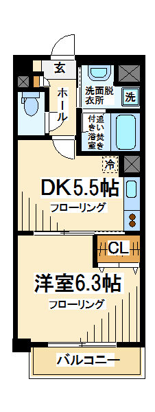 【設 備】 追い焚き、2口ガスコンロ設置可、独立洗面台、室内洗濯機置場、