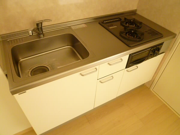 グリル付きの2口ガスコンロシステムキッチンは、調理スペースの幅が広く、