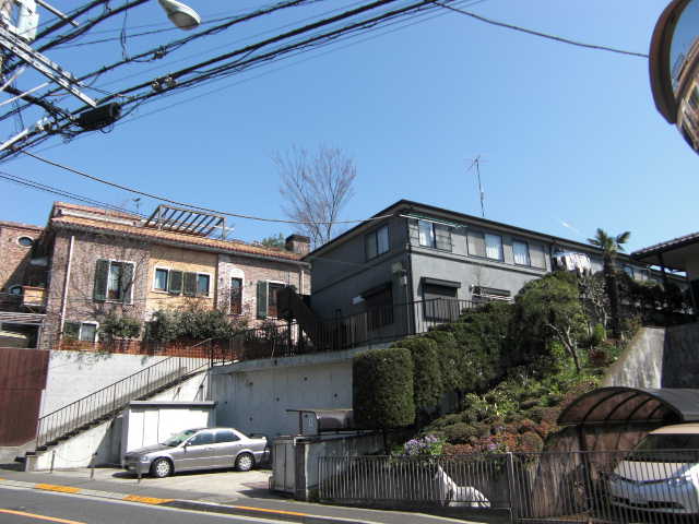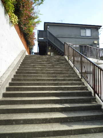専用の階段を登った先、高台にある建物なので、眺望が良く建物周辺には開放感があります
