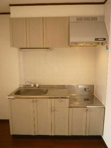 キッチンは2口コンロのシステムキッチンです