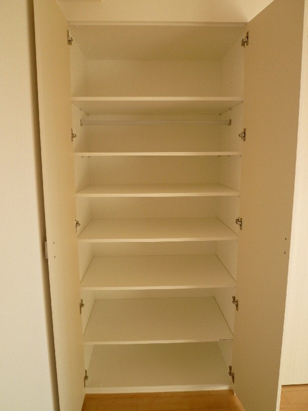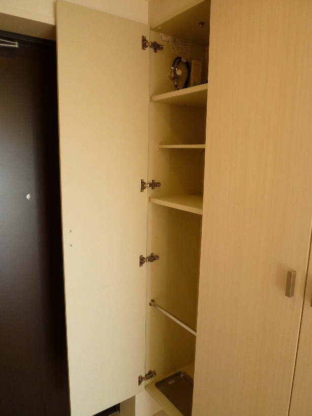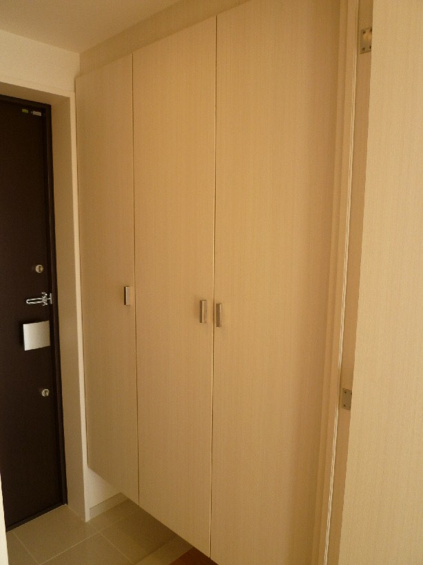 カラーモニター付きのオートロックですのでこちらでお顔を拝見できます。また収納もしっかりと完備しております。