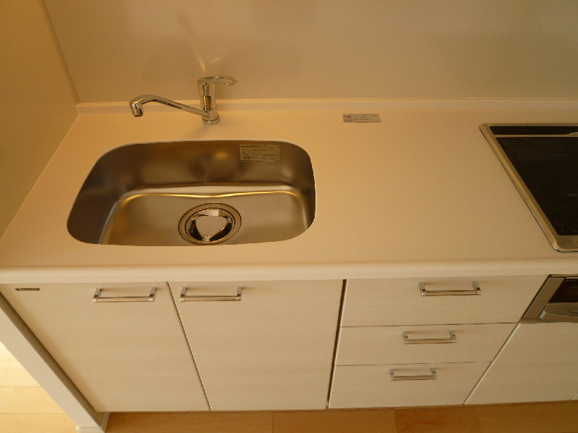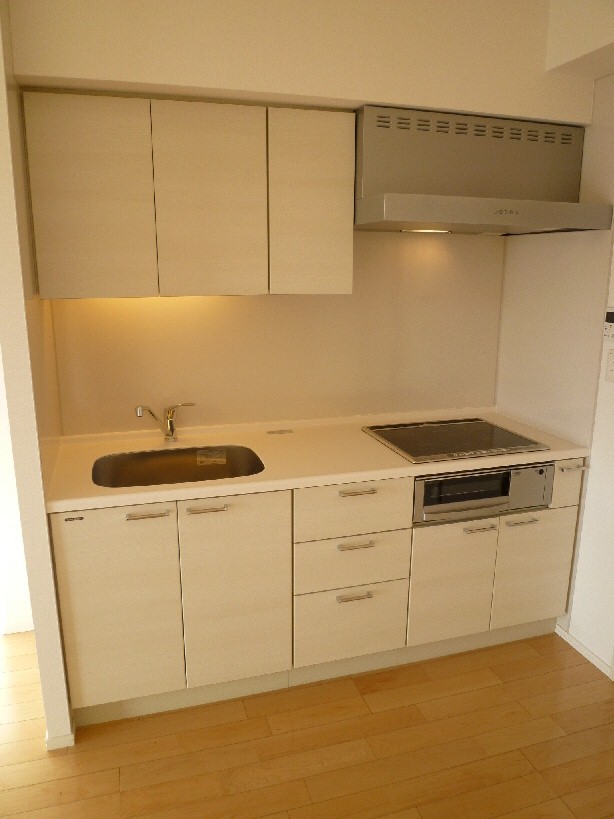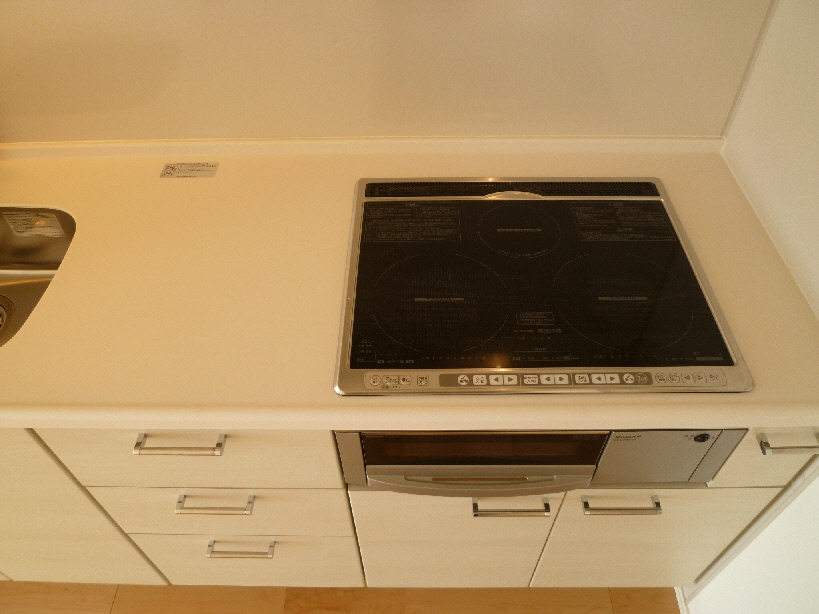 キッチンは白を基調とした清潔感あるシステムキッチンタイプまたIHクッキングヒーターの