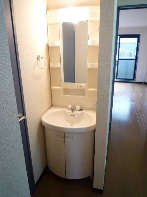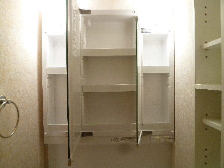 綺麗な水周りは、毎日使う場所ですのでポイント高いですね!お洒落な洗面台!横には、化粧品や歯ブラシなどの収納に便利な