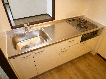 お料理好きにはたまらない、システムキッチン(ガス3口+グリル)です☆スーパーも目の前にございますので、自炊がより楽しくなりますね!