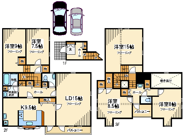 ここでは8・8,5・15帖の洋室をご紹介いたします