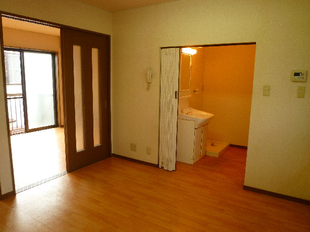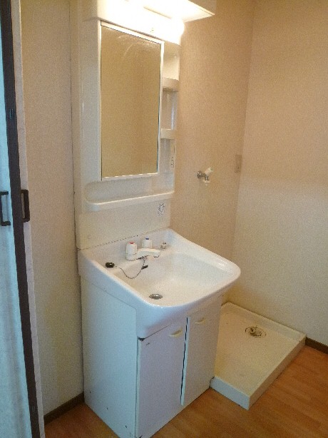 仕切られていますが、お風呂・独立洗面台・室内洗濯機置き場と水周りが一つにまとまり、更にこのお部屋は脱衣所のスペースが広いです