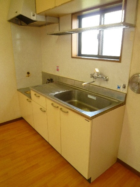 2口ガスコンロ設置可能!キッチン前にも窓があり、明りと換気するのに便利です