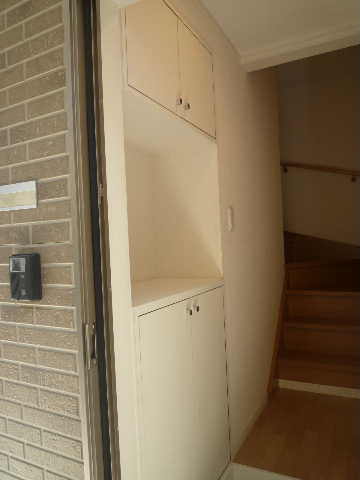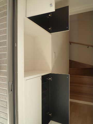 玄関を入ると上下に収納スペースがわかれた下駄箱があります。