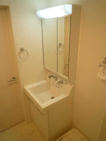 洗面脱衣所には独立洗面台と室内洗濯機置場