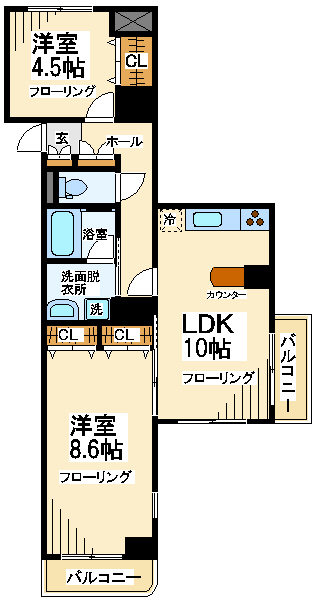 【間取り】 2LDK 60、39㎡