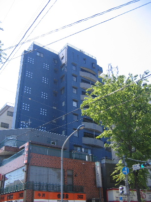 きたらもうすぐです 青い看板がレントハウス仙川店です。