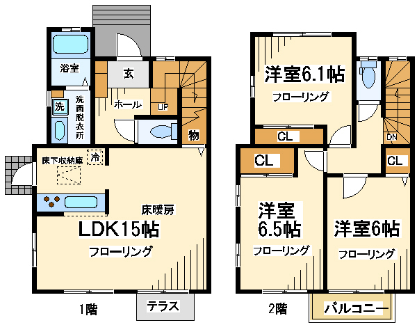 2階には洋室、和室がそれぞれ1部屋ございます