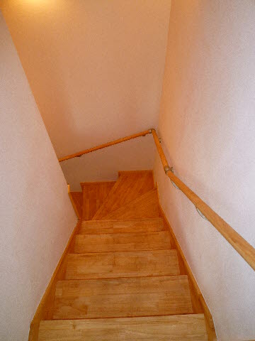 到着です。ありがとうございます。 こちらの階段を上がった2階です