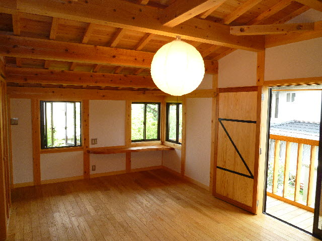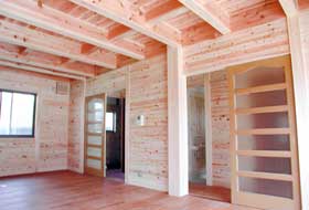 壁や床など新建材や合板等を一切使わず、すべて無垢の厚板や角材で昔の倉のつくり方で