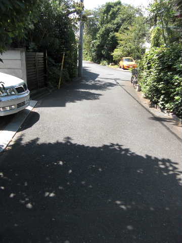 左にクリーニング店、この先の右側きたらもうすぐです 青い看板がレントハウス仙川店です。