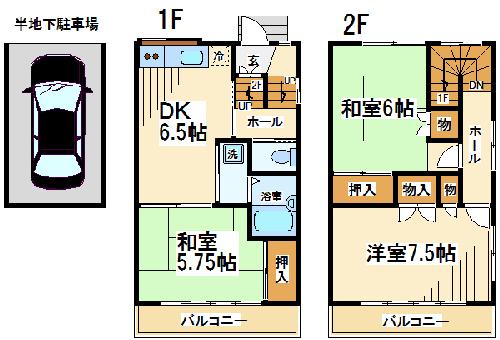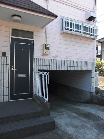 と、いうのもこちらのお部屋に1台無料で付いてくる駐車場がお部屋の半地下部分になるので