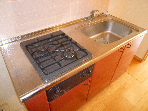 【設備、仕様】 エアコン、システムキッチン(2口 グリル付き)