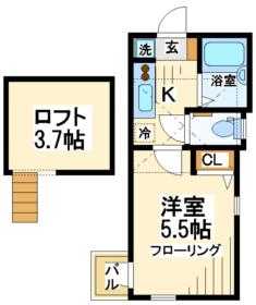 【間取り】 1K 16.65㎡(ロフト6.24㎡)