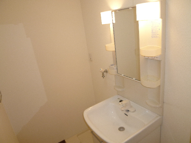 独立洗面台は鏡が大きくて綺麗です!隣には室内洗濯置き場を完備